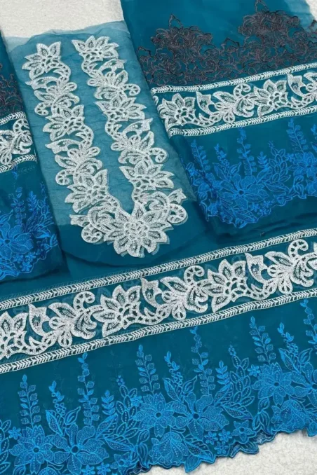 M&M Blue and White Set (Neckline + Full Sleeves + Front + Back)